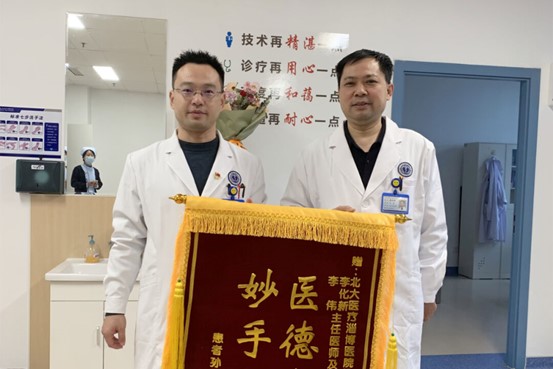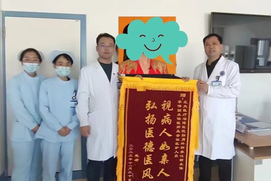 85歲的美籍華人王大爺(化名)大便不通,前不久從美國回來體檢時(shí),發(fā)現(xiàn)便血,經(jīng)過腸鏡檢查需要進(jìn)行手術(shù),胃腸外科主任、主任醫(yī)師李化新,副主任醫(yī)師李偉考慮其年齡較大,手術(shù)治療存在一定風(fēng)險(xiǎn),于是組織專家會診,制定詳細(xì)的手術(shù)方案。王大爺子女得知手術(shù)治療的消息后,立即從美國趕來。胃腸外科專家對其詳細(xì)溝通后,家屬選擇信任并同意手術(shù),手術(shù)順利王大爺生活質(zhì)量得到了最大改善,家屬為其特意將錦旗送來。另外三面錦旗,均為胃腸外科主任、主任醫(yī)師李化新,副主任醫(yī)師李偉,為患者成功實(shí)施手術(shù),家屬特意送來表達(dá)心中感激之情的。