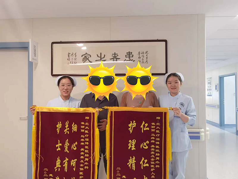 胃腸外科醫(yī)護人員收到三面紅彤彤的錦旗,表達了患者對胃腸外科全體醫(yī)護人員在院期間的治療與照護。