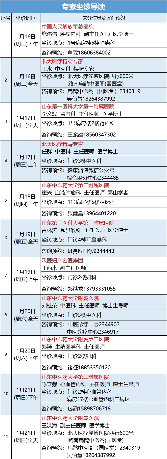 1月15日——1月21日(周一至周日)中國人民解放軍總醫(yī)院腫瘤內(nèi)科副主任醫(yī)師施偉偉,山東第一醫(yī)科大學(xué)第一附屬醫(yī)院腎內(nèi)科主任醫(yī)師李文斌,山東中醫(yī)藥大學(xué)第二附屬醫(yī)院生殖醫(yī)學(xué)科主任醫(yī)師張斌,原北京協(xié)和醫(yī)院副主任醫(yī)師龔曉明等11位名醫(yī)將來北大醫(yī)療淄博醫(yī)院(淄博經(jīng)開區(qū)醫(yī)院)坐診。廣大市民如有就診需求,可以通過電話、現(xiàn)場咨詢等方式提前預(yù)約。